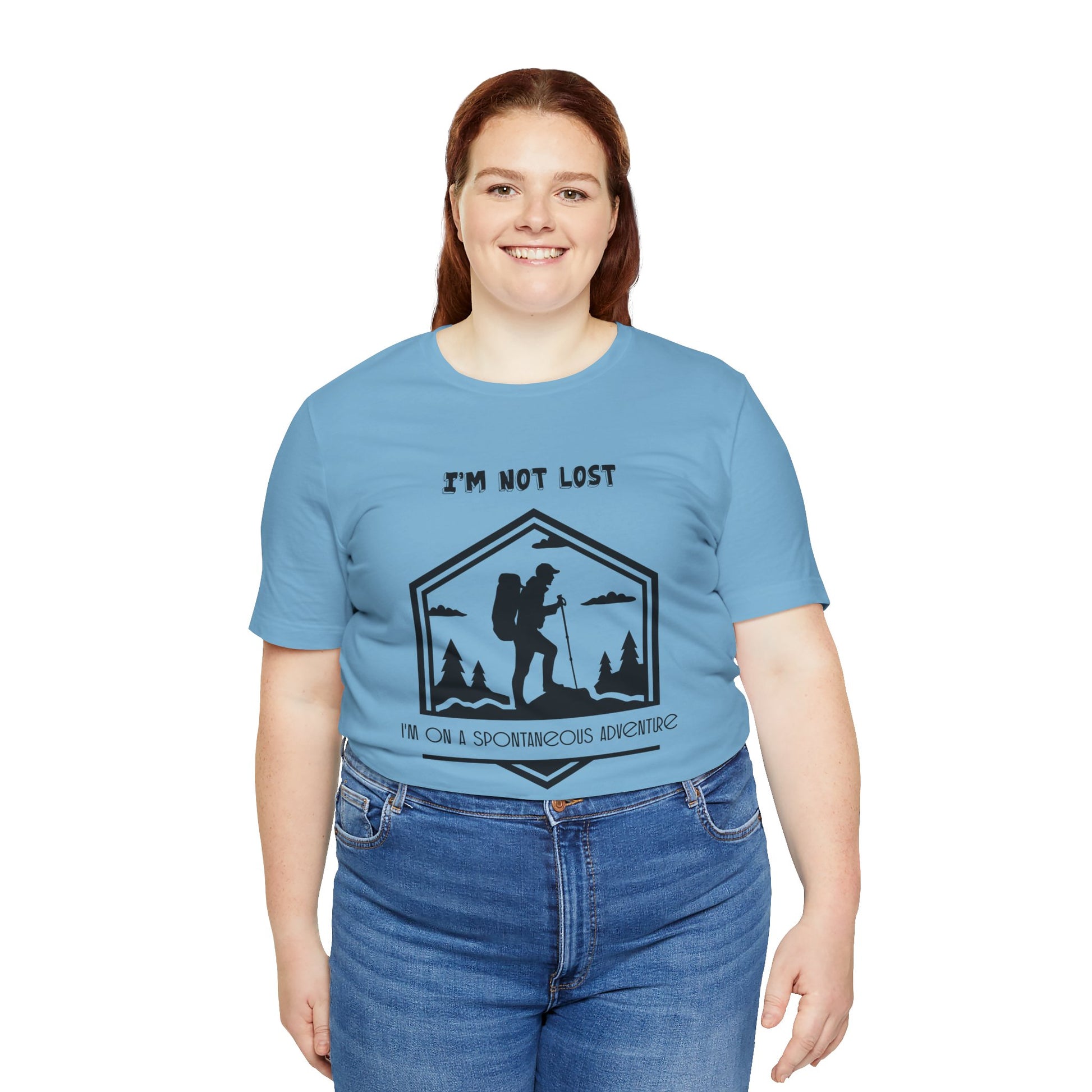 This T-Shirt features a playful design that says I'm Not Lost I'm On A Spontaneous Adventure. It gives off a laid-back and adventurous vibe, perfect for those who love spontaneous trips and exploring new places. Ideal for casual wear and can be layered for different looks. Relevant for travelers, adventurers, and those with a wanderlust spirit. Suitable for vacations, road trips, outdoor adventures, and everyday wear.