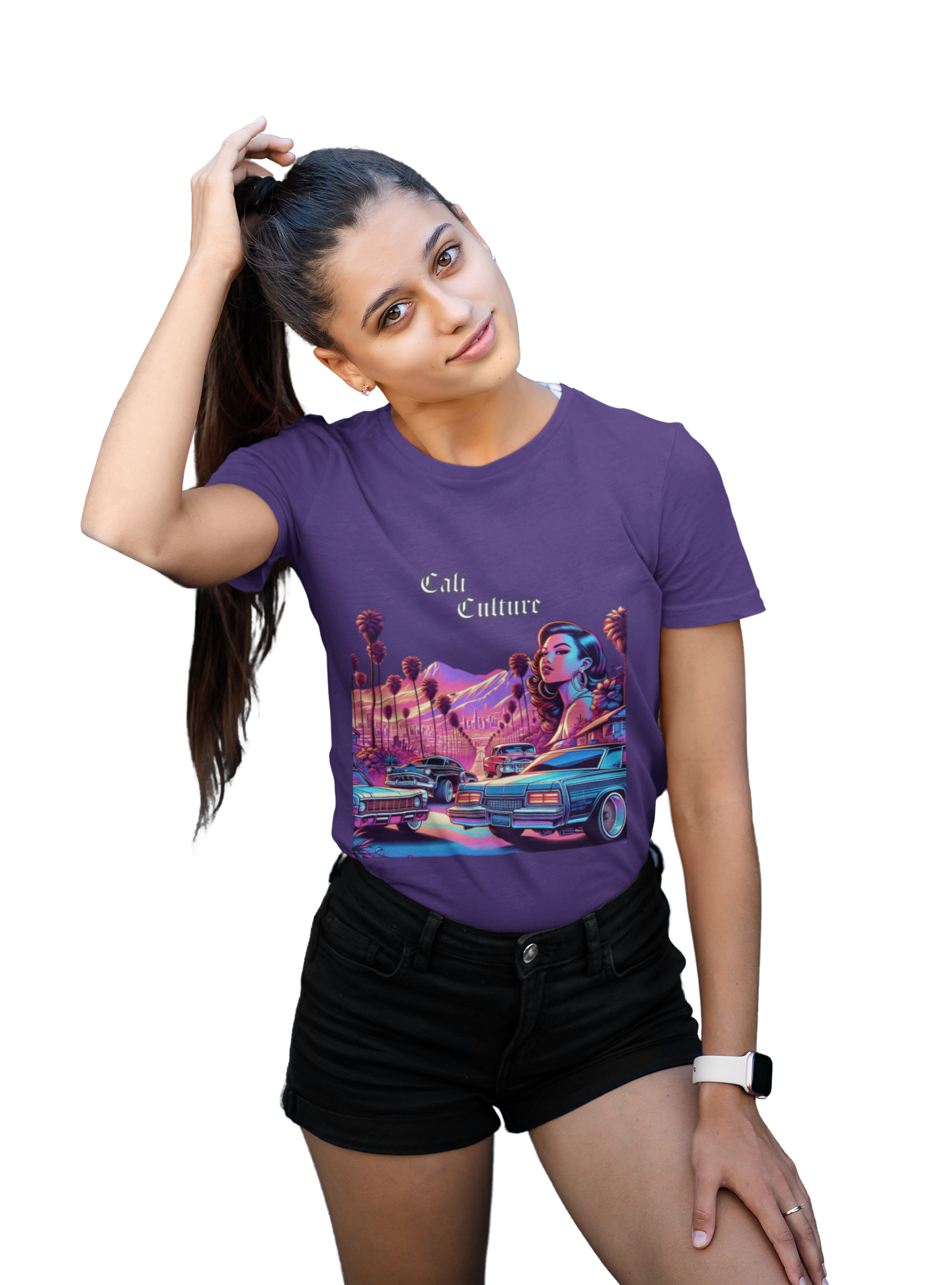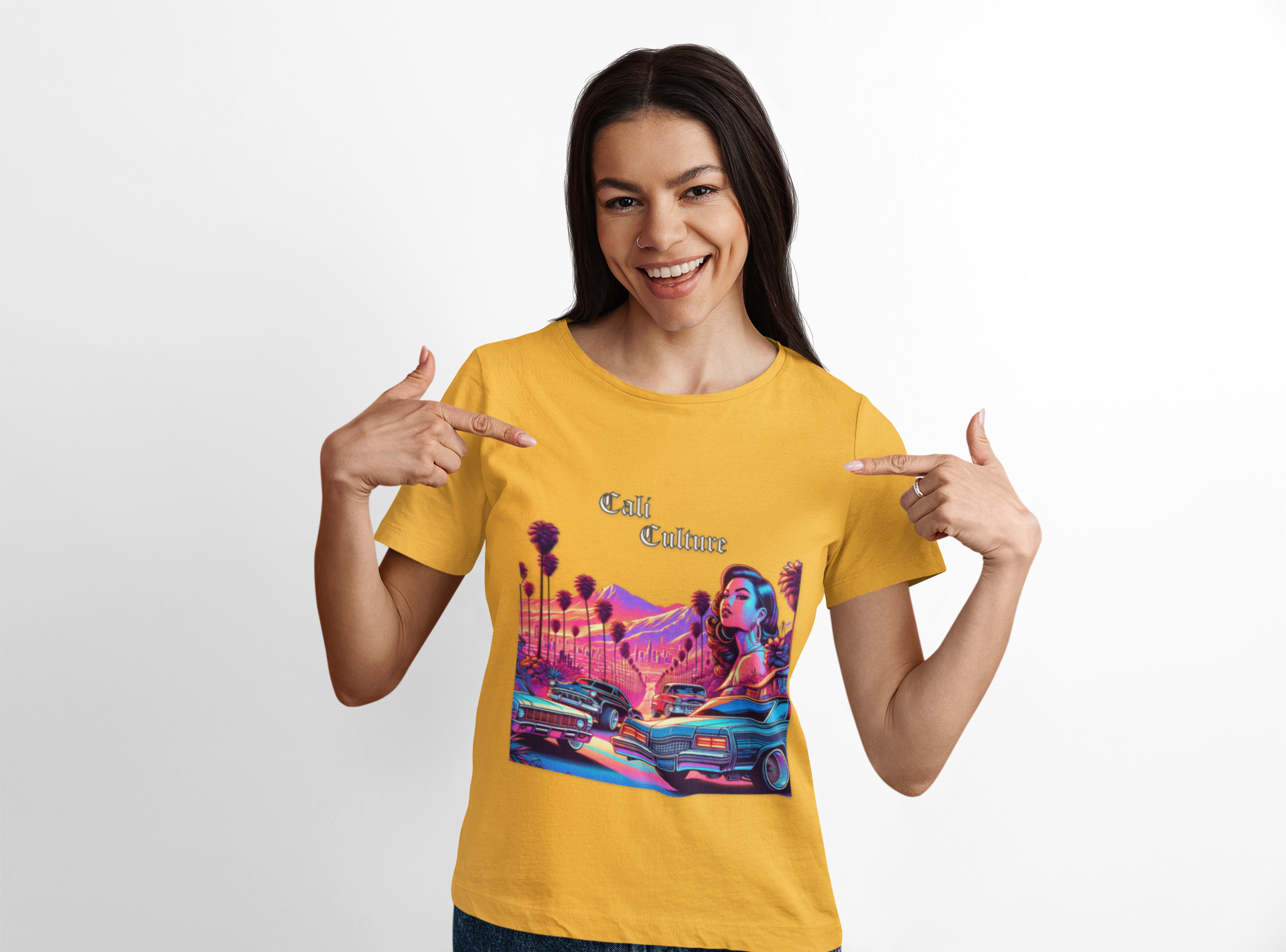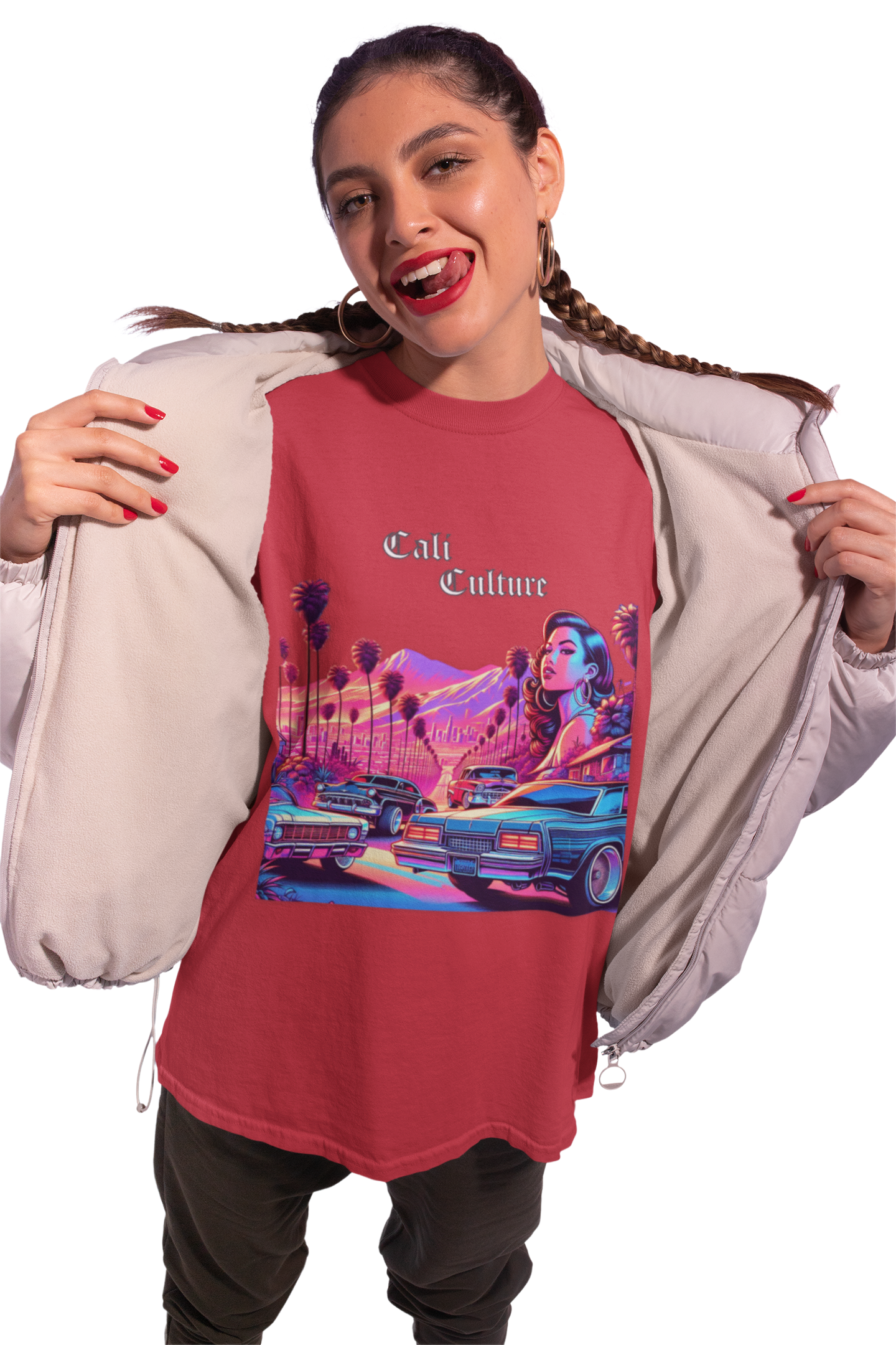 A California lowrider love themed T-Shirt perfect for enthusiasts of vintage cars and West Coast culture. This comfy and stylish tee is ideal for casual outings, car shows, or simply lounging around. Relevant for car enthusiasts, fans of California culture, and those who appreciate retro designs. Great for gifting on birthdays, holidays, and special occasions.