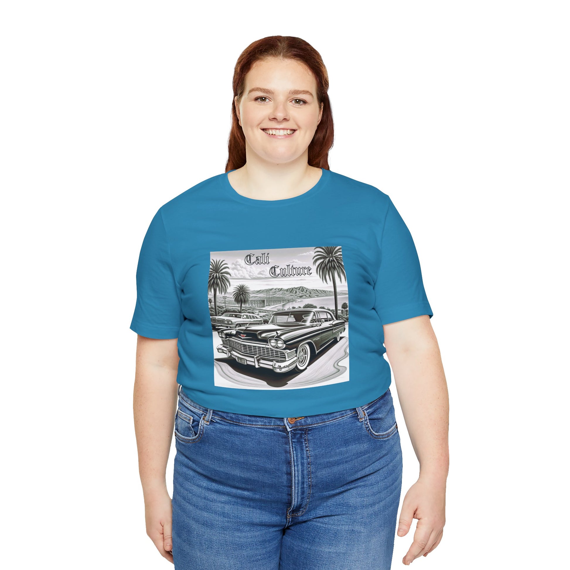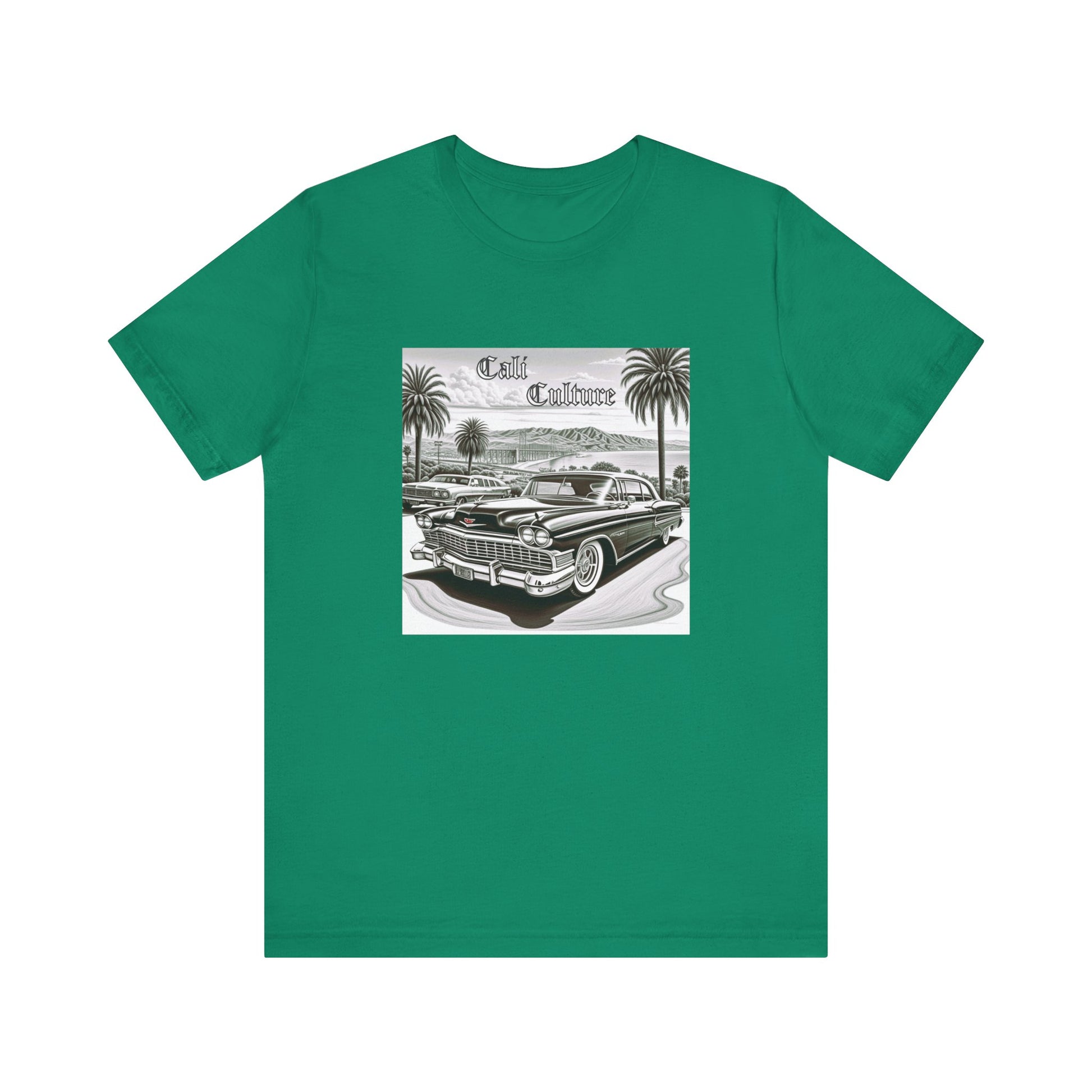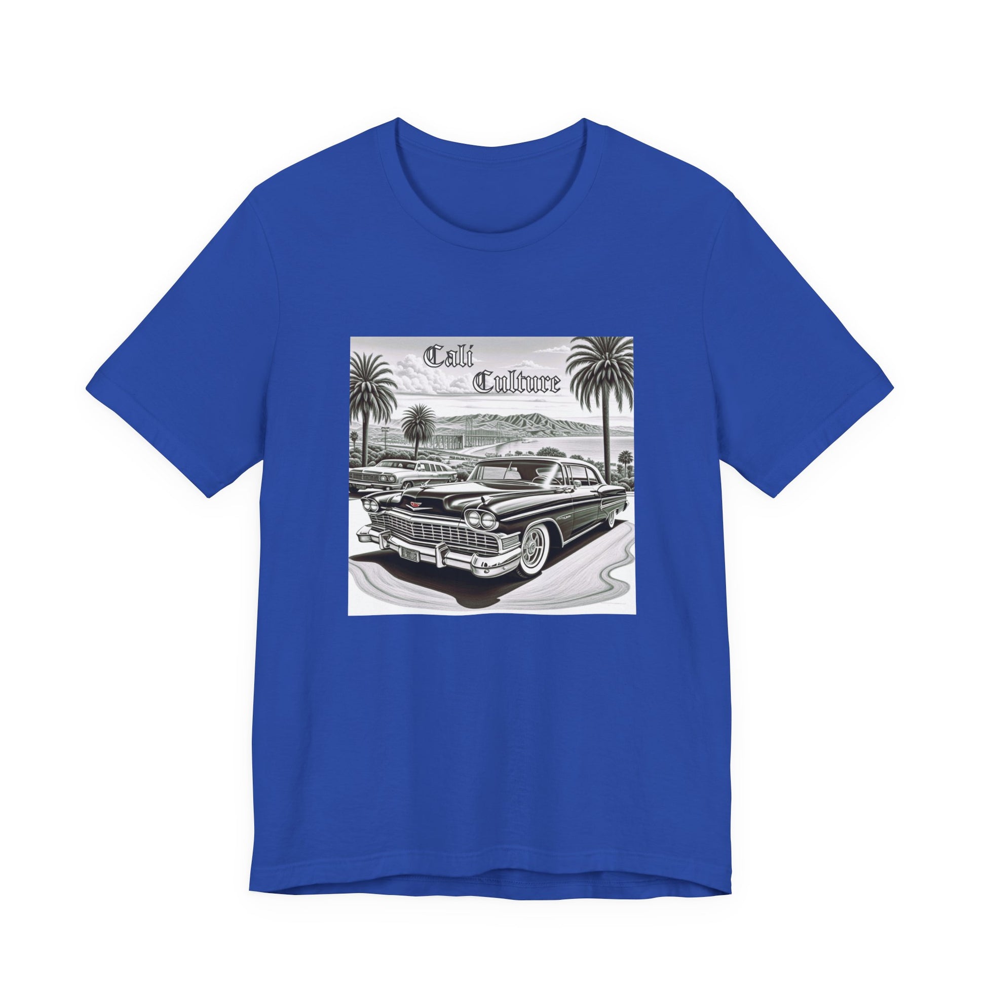 A California lowrider love themed T-Shirt that exudes a laid-back and vintage vibe. Perfect for casual wear and those who appreciate retro style. Ideal for individuals who love California culture and lowrider cars. Relevant for Valentine's Day, birthdays, and casual events.