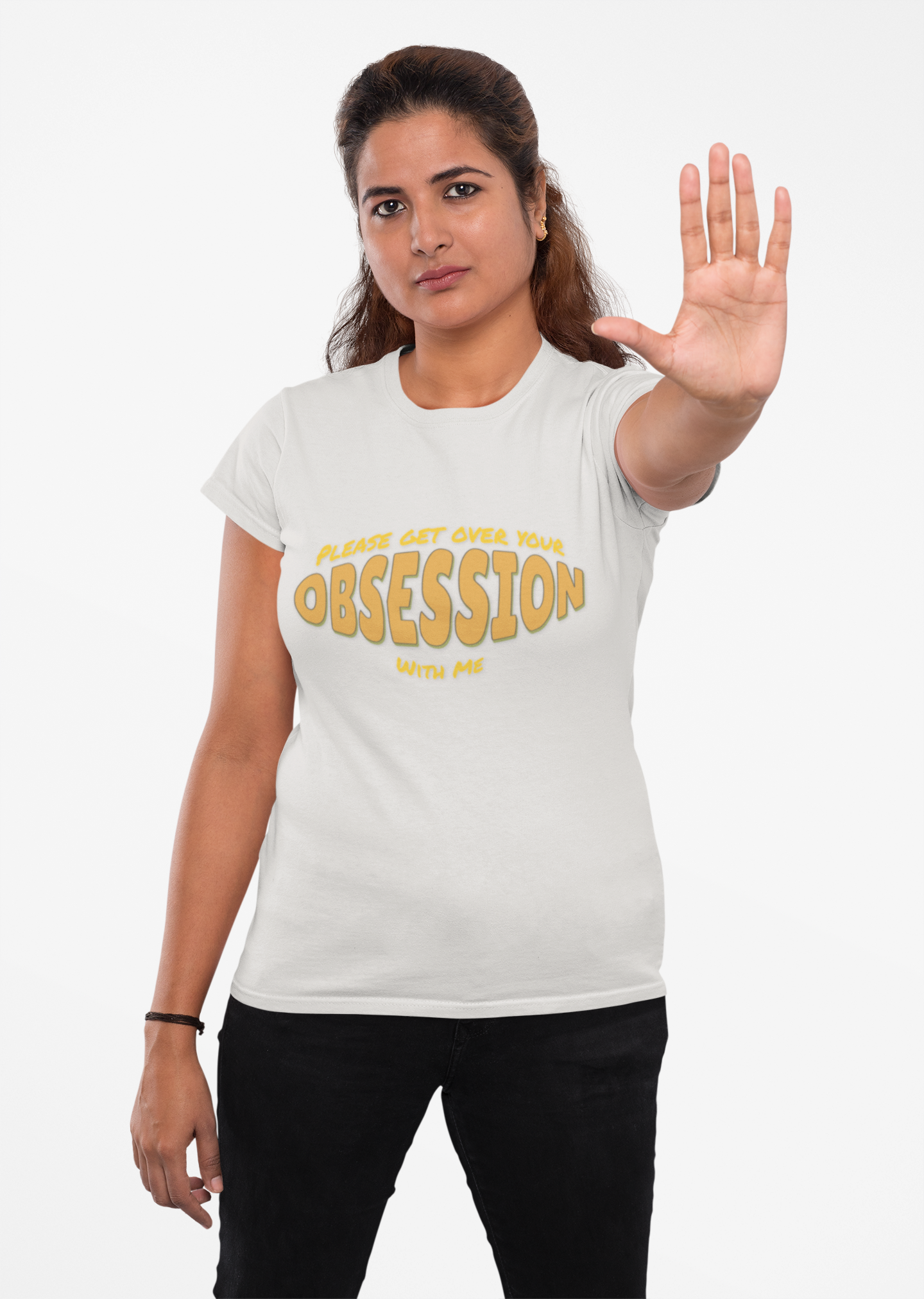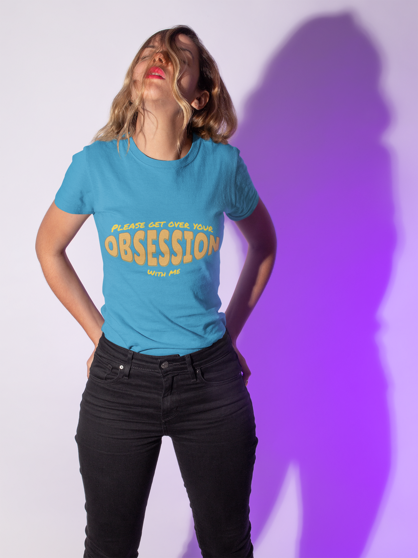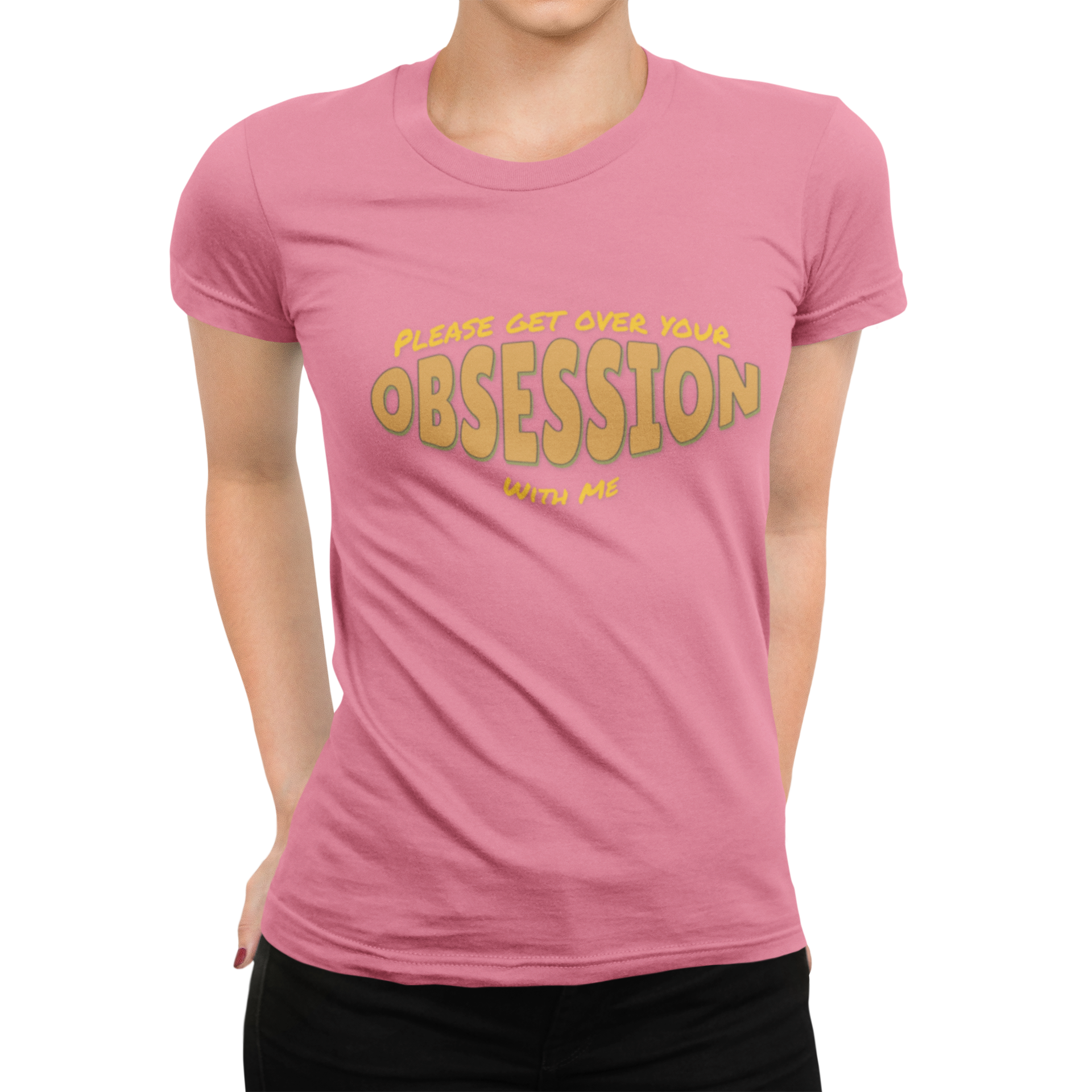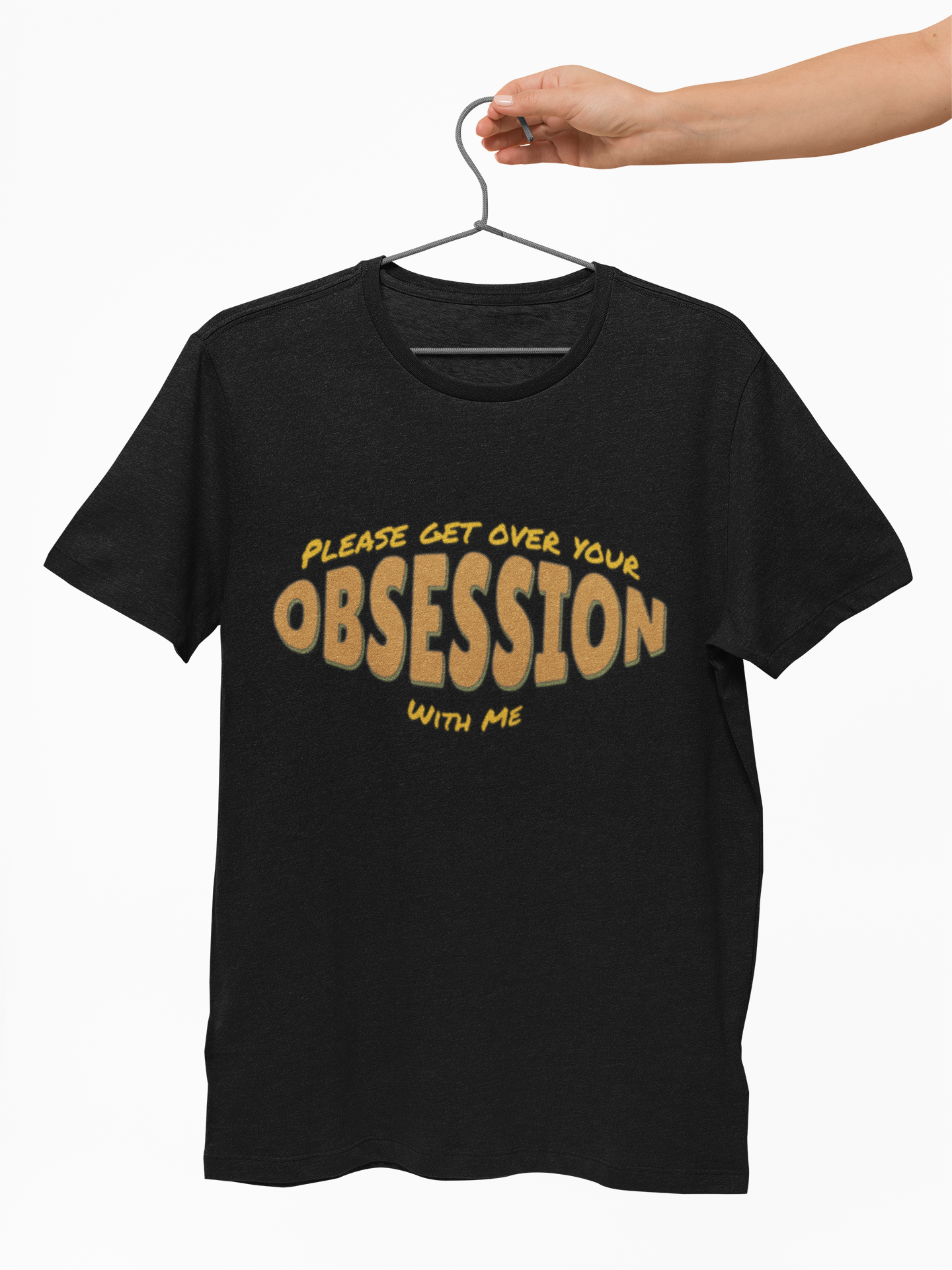 This funny 'Please Get Over Your Obsession With Me' T-Shirt is a humorous way to redirect people's attention. It's perfect for those with a witty sense of humor who enjoy making light-hearted statements. Ideal for casual settings, this tee can be worn by anyone looking to add a fun element to their outfit. Relevant for occasions like parties, casual hangouts, and everyday wear.