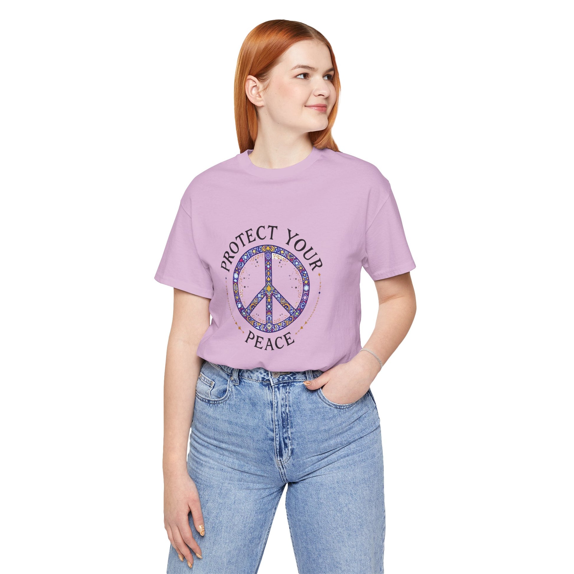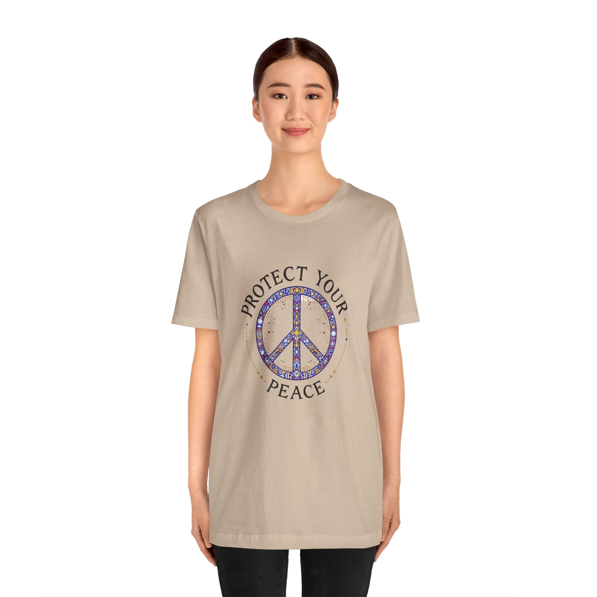 Protect Your Peace Unisex Tee, Casual Wear, Gift for Him/Her, Peace Sign T-Shirt, Affirmation Top, Relaxed Fit Tee