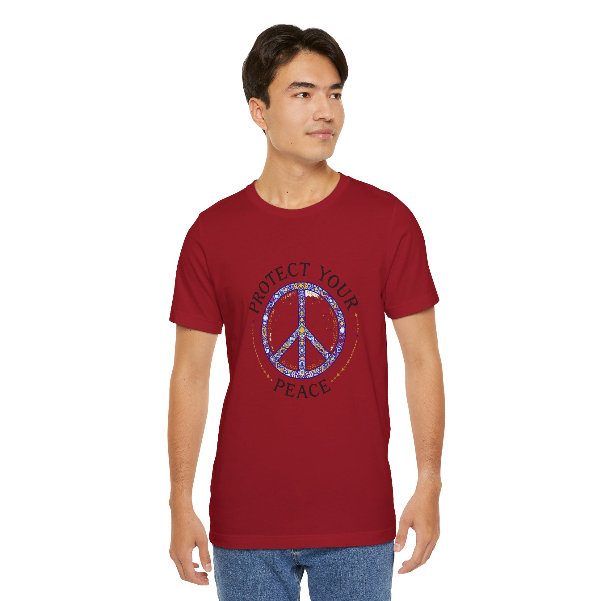 Introducing this stylish Unisex Jersey Short Sleeve Tee, designed to bring comfort and positivity to your wardrobe. With its eye-catching 'Protect Your Peace' print, this tee creates a sense of tranquility and mindfulness, perfect for casual outings or relaxed gatherings. Its lightweight, breathable fabric makes it ideal for both active lifestyles and lounging at home.
