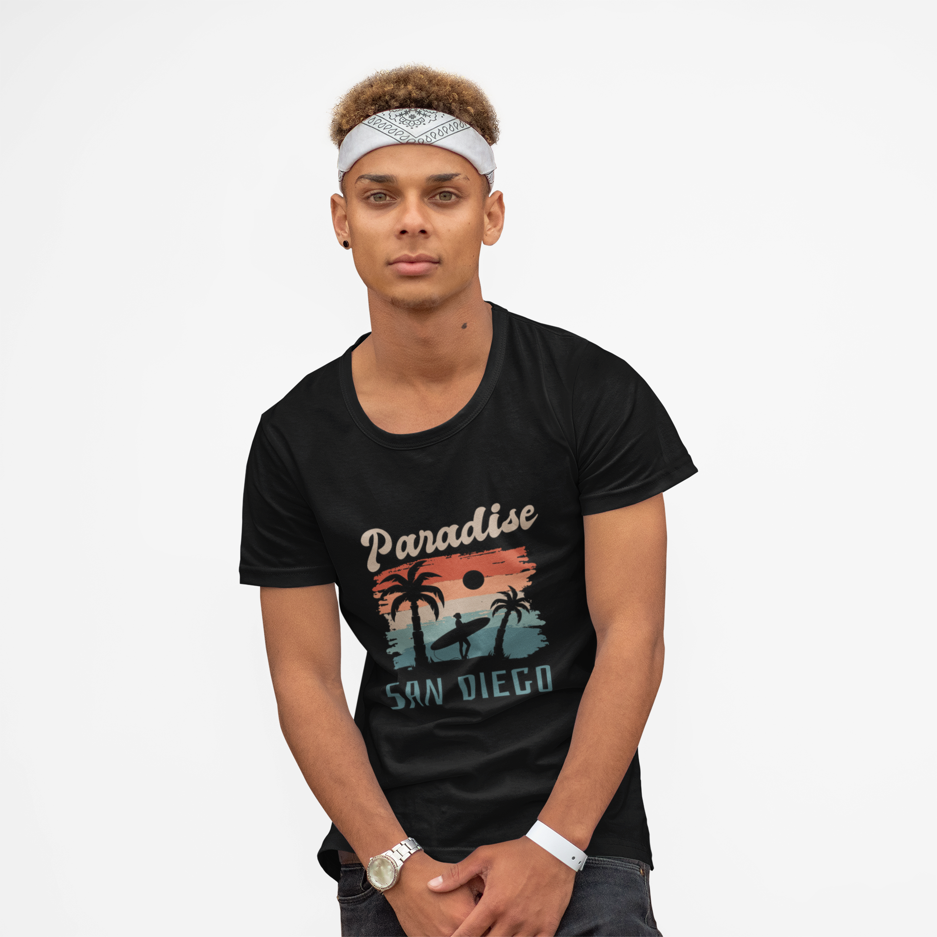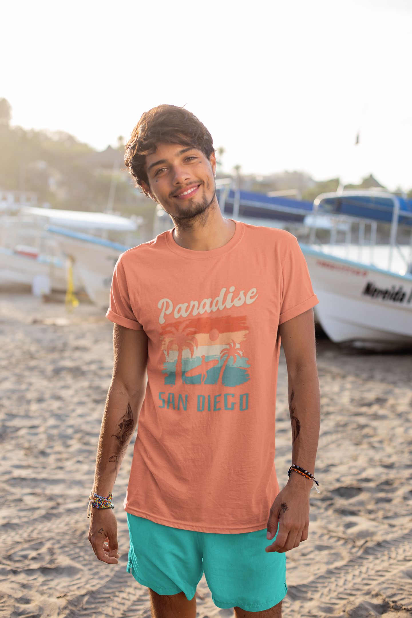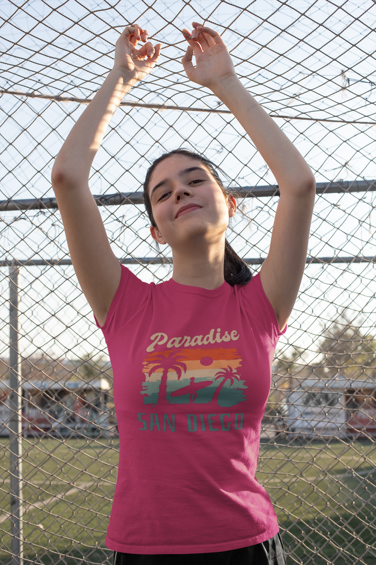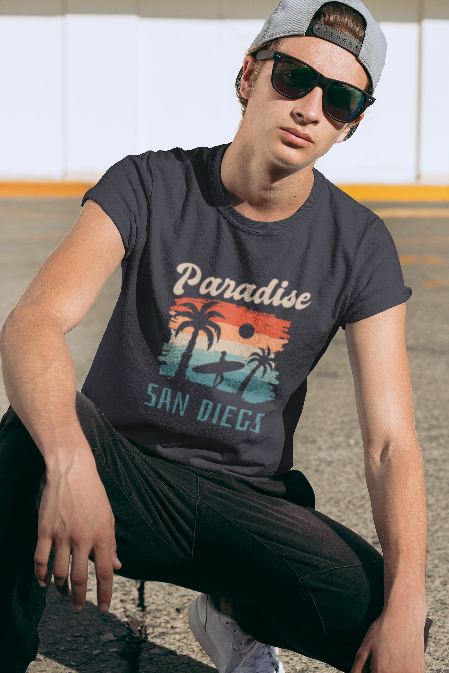 This 'Paradise, San Diego' t-shirt is a fun shirt for a San Diego vacation. It gives a relaxed and beachy vibe, perfect for casual outings and sightseeing in sunny San Diego. Ideal for tourists or locals looking to show their love for the city. Relevant for beach vacations, summer trips, and souvenir shopping.