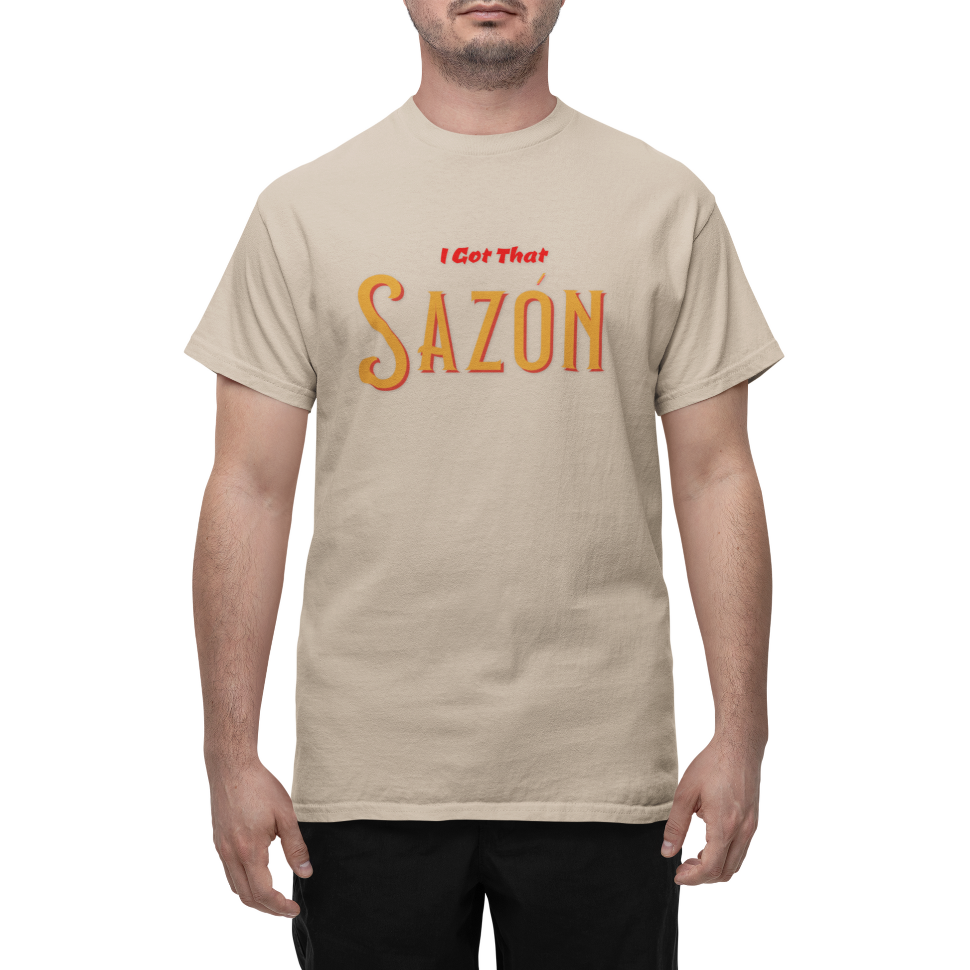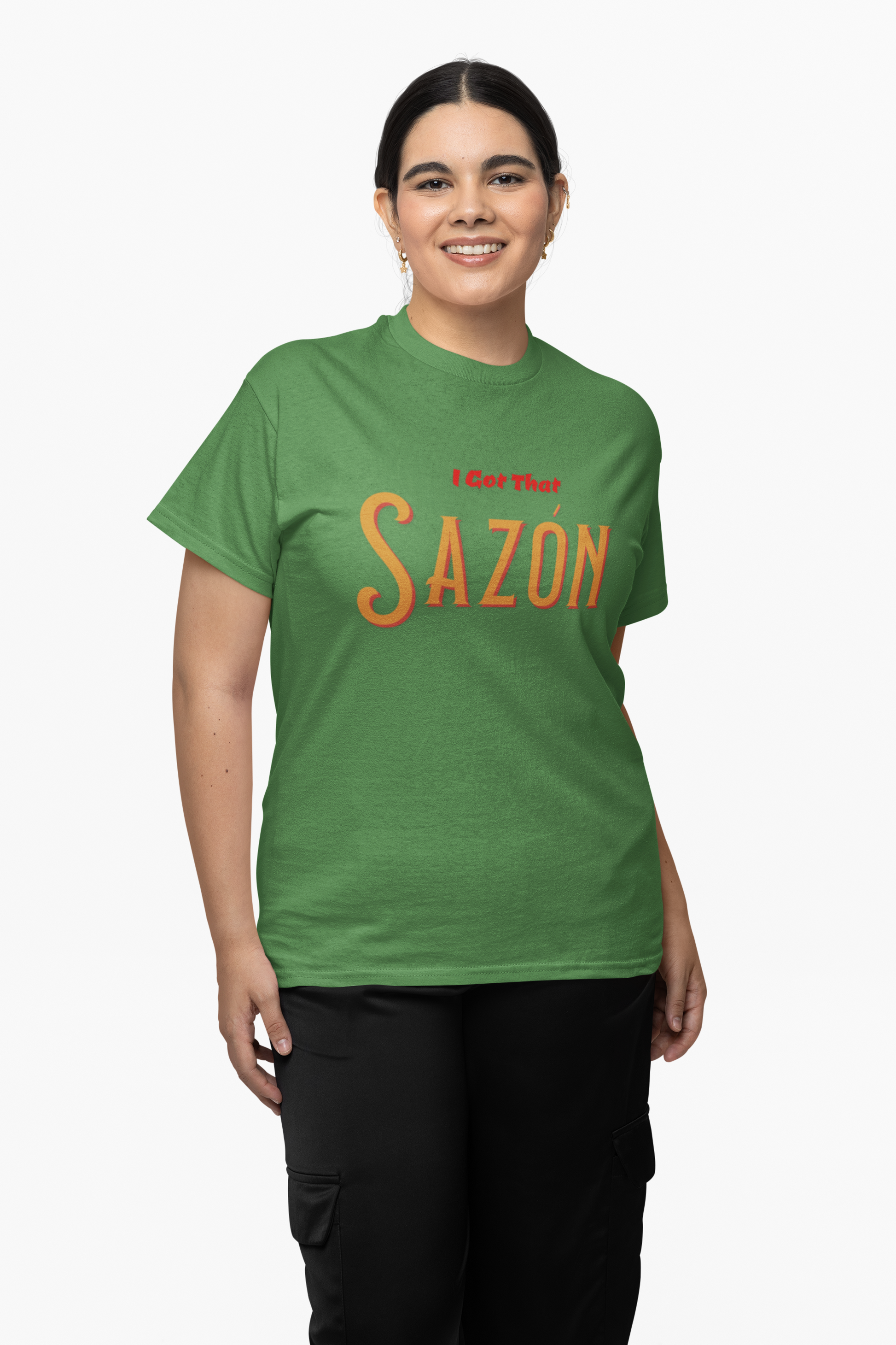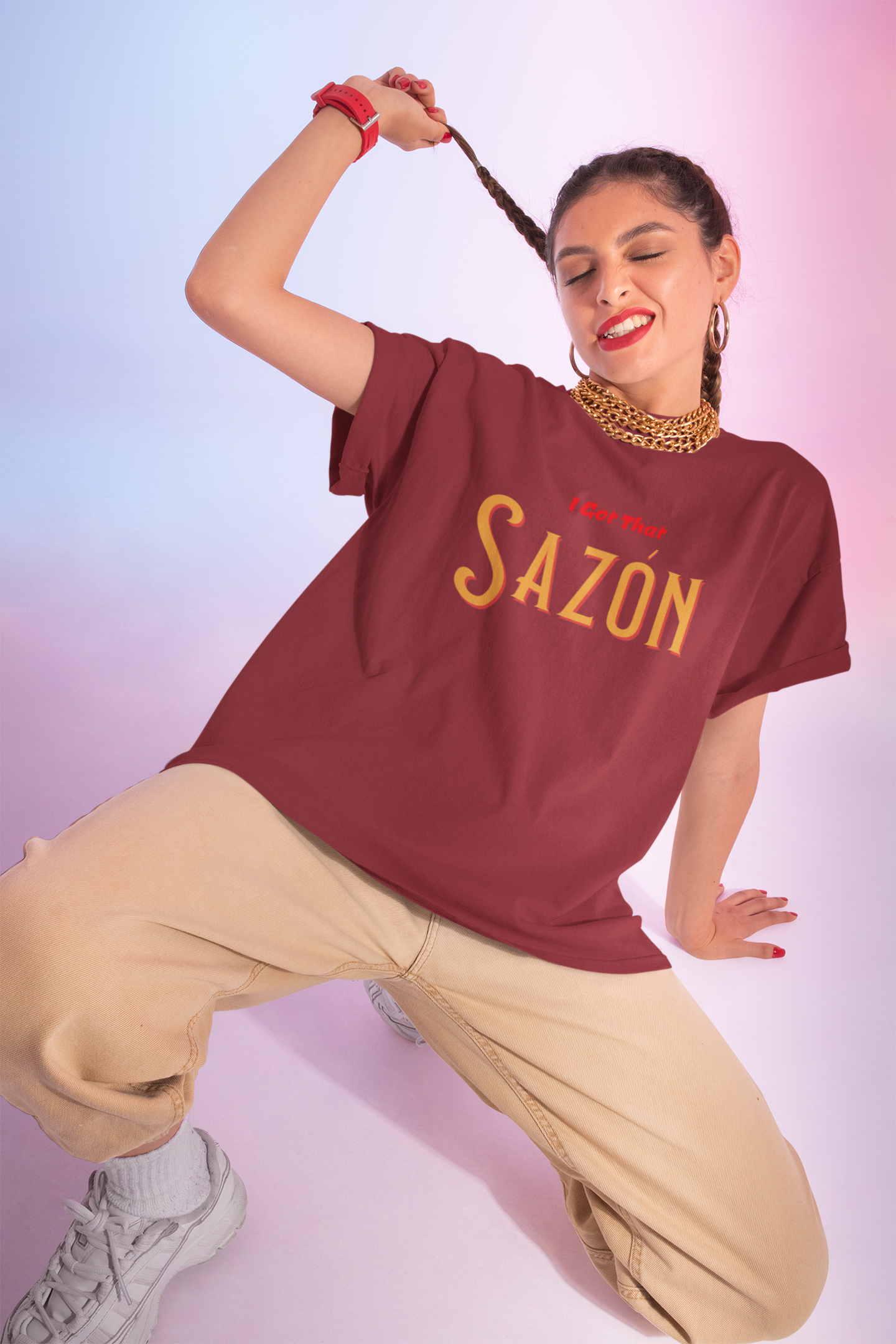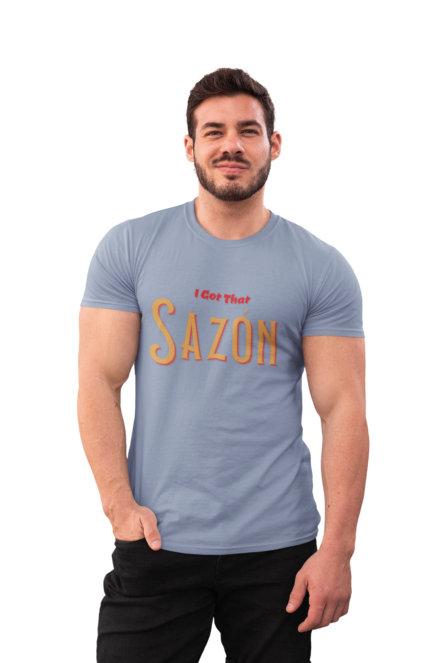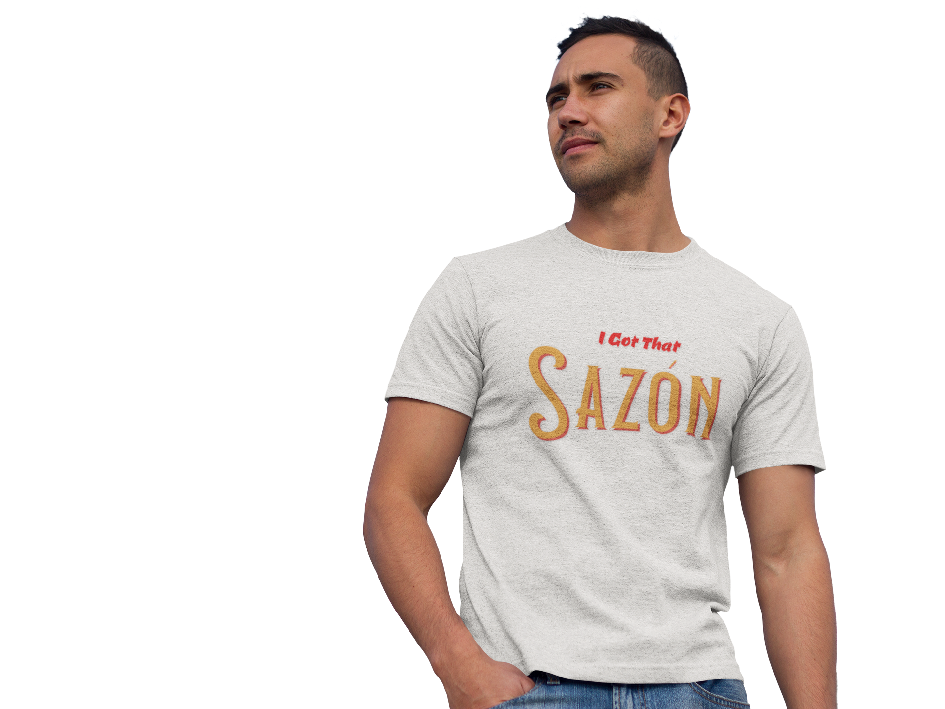 A vibrant and playful T-Shirt with the 'I Got That Sazon' design, perfect for adding a pop of color to your casual wear. Made with lightweight, breathable cotton, this T-Shirt is ideal for active and leisure wear. It has a retail fit that works well for both casual and semi-formal settings. A great choice for anyone who loves bold, colorful designs and wants a comfortable, versatile piece in their wardrobe. Perfect for celebrating Hispanic Heritage Month and adding a festive touch to everyday outfits.