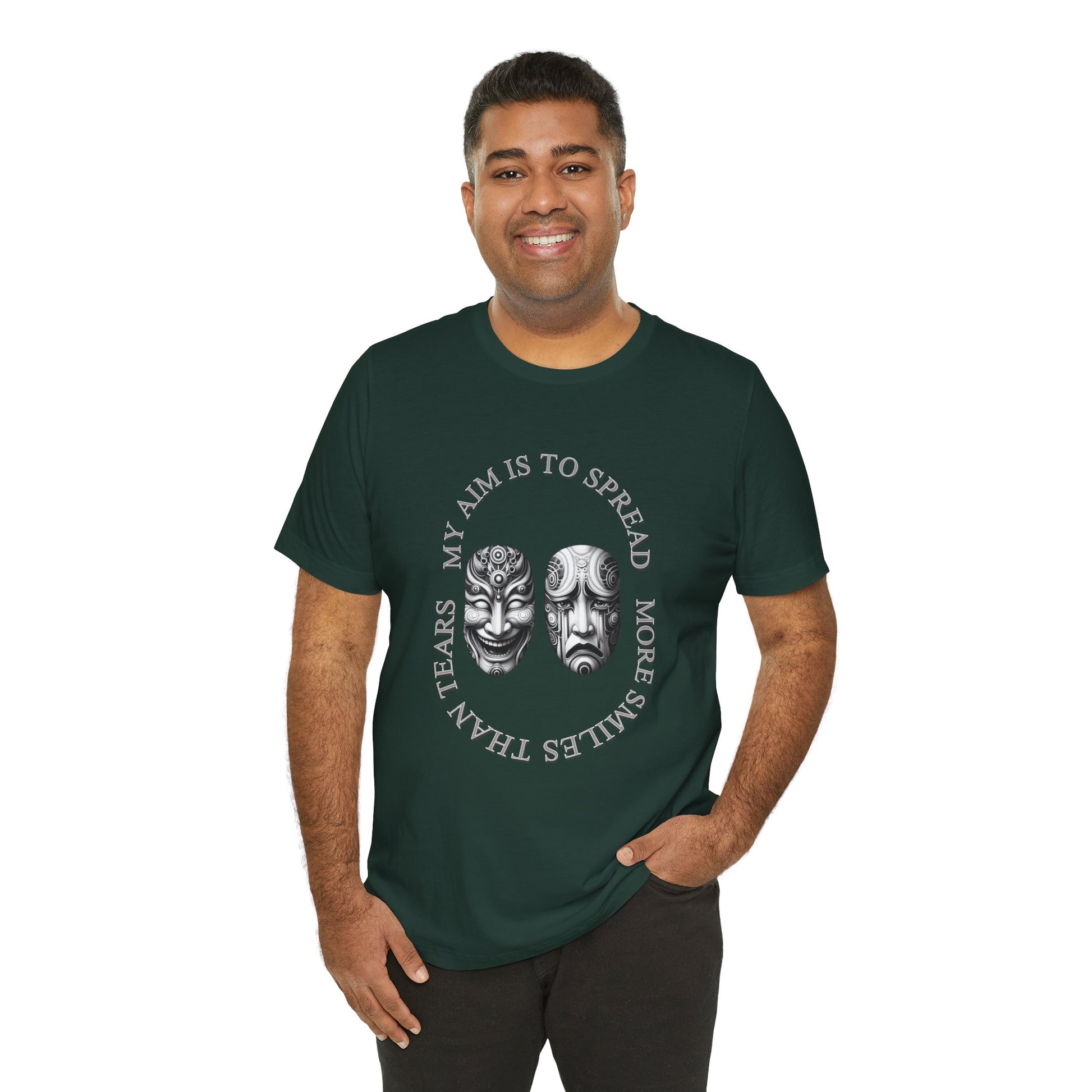 Spread positivity and joy with this T-Shirt featuring a heartfelt message that aims to bring more smiles than tears. Made with 100% Airlume combed and ring-spun cotton, this lightweight shirt is perfect for everyday wear. The retail fit and classic crew neckline make it versatile for casual and semi-formal settings, adding a touch of style to any outfit. Ideal for adults looking for a comfortable and breathable shirt to express positivity. Product features - Made with 100% Airlume combed and ring-spun cotton - Retail fit suitable for casual and semi-formal settings - Lightweight and breathable fabric perfect for active wear - Features a heartfelt message to spread positivity - Designed for adults and compliant with REACH certification Care instructions - Machine wash: cold (max 30C or 90F) - Non-chlorine: bleach as needed - Tumble dry: low heat - Iron, steam or dry: medium heat - Do not dryclean